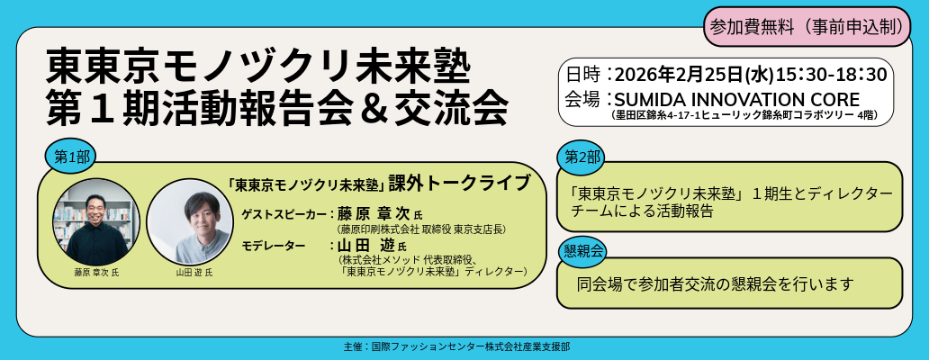 ファッションやライフスタイル関連のものづくり中小企業の成長を支援します